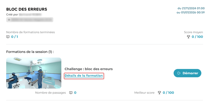 Un panneau latéral s'affiche sur la droite de votre écran, depuis celui-ci cliquez sur "Détails de la formation".