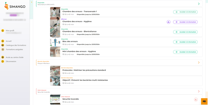 6 - "Bientôt disponible", en orange : indique que cette formation n'est pas encore accessible mais le sera prochainement.