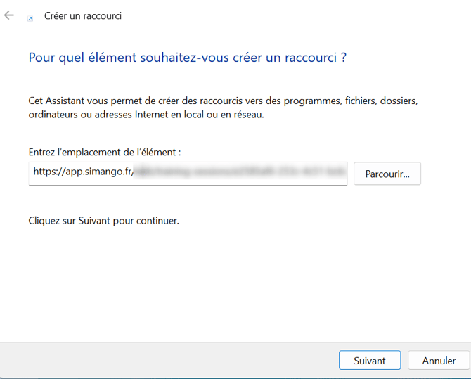 Après avoir créé votre session de formation en identification libre, une des solutions les plus simples pour la diffuser est de créer un raccourci directement sur le bureau de vos apprenants.