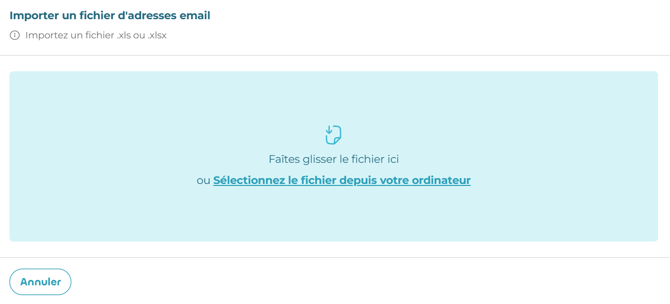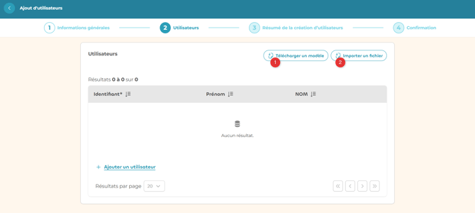 - Si vous n'avez pas de fichier de ce type, cliquez sur "Télécharger un modèle". Remplissez ce fichier avec les données de vos apprenants.
